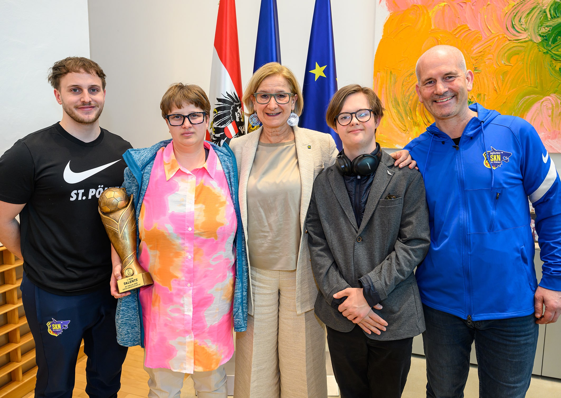 LH Mikl-Leitner gratulierte dem Special Needs-Team des SKN St. Pölten zum ersten Platz beim Spielerpass-Cup